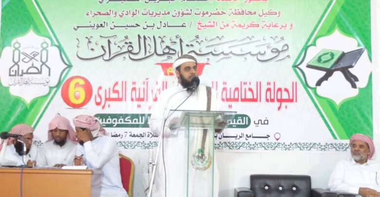بحضور وكيل وادي حضرموت مؤسسة أهل القرآن تختتم المسابقة القرآنية الكبرى السادسة بسيؤن.