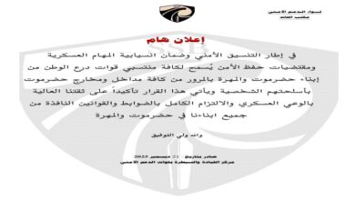 أصدر مركز القيادة والسيطرة لقوات الدعم الأمني بمحافظة حضرموت، اليوم الأحد، تعميمًا يقضي بالسماح لكافة منتسبي قوات «درع الوطن» من…