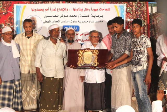حيث جات فعالية الذكرى الأولى برعاية رئيس المجلس المحلي بسيئون مدير عام مديرية سيئون الاستاذ محمد عوض العامري وبمبادرة ذاتية من أهالي الحي وتحت شعار (للنجاحات جهوداً رجال يبذلونها .. للإبداع ثماراً أمم يحصدونها )