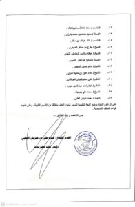 وجاء في القرار : بعد الاطلاع على وثيقة الحلف الموقع عليها المؤسسون بتاريخ 04/07/2013م , وعلى البيان الأول التأسيسي للحلف, وعلى بيان المؤتمر الاستثنائي للحلف بتاريخ 10/12/2013م (تداعيات مقتل مؤسس الحلف الشهيد سعد بن حبريش) , وعلى الأهداف العامة للحلف , ومخرجات اللقاء التشاوري المنعقد بالمكلا لقيادة الحلف بتاريخ يوم الاربعاء : 17/03/2021م , قرر تشكيل اللجنة من التالية اسماءهم: